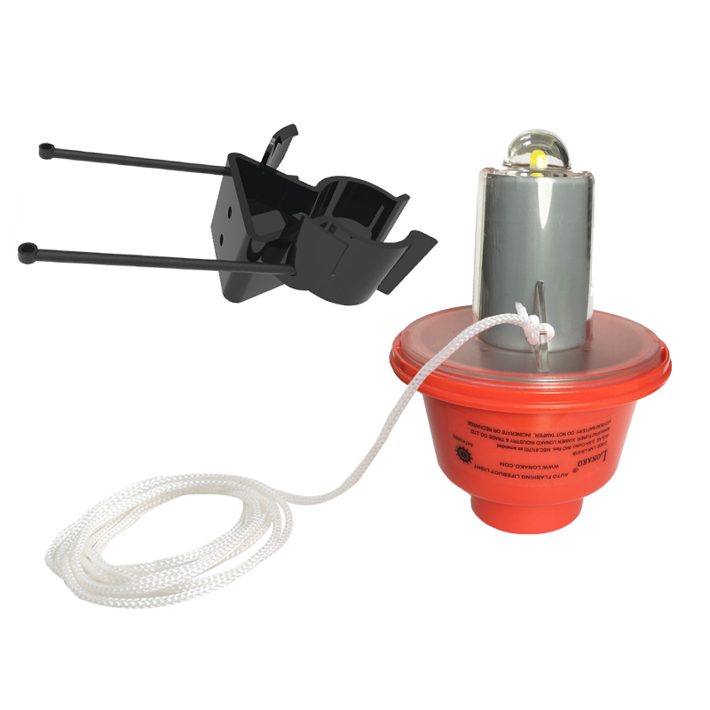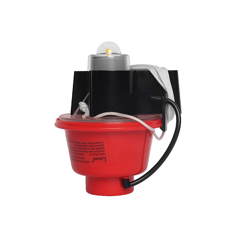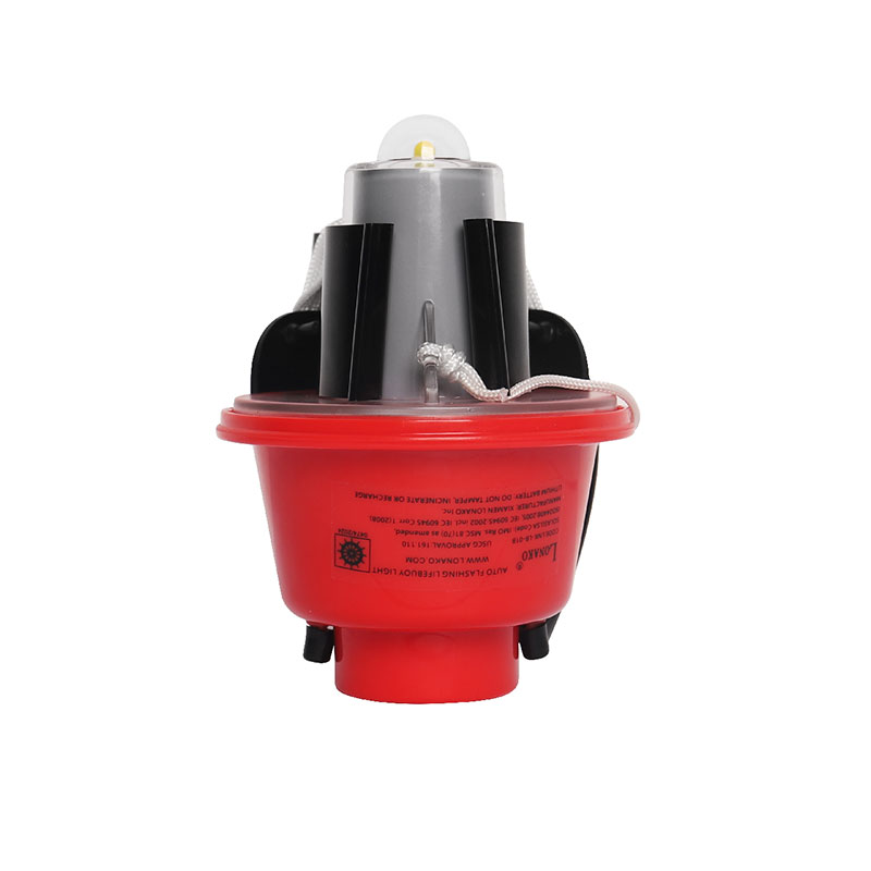 LNK-LB-01B救生圈灯是锂电池供电的救生信号灯,适用于与各种救生圈配套安装。该款救生圈灯配备重力感应和水流开关双重开关系统。当圈灯随救生圈一起抛入水中时,得益于其独特的重力设计,救生圈灯将自动漂浮于水面且LED灯头部分将自动朝上。 此时圈灯的水流开关也将随之泡在水中,因此救生圈灯将自动启动。产品启动后能在持续24小时(-1℃环境下14小时)发出光强大于2.0 cd的闪烁白光用于指示救生圈位置,提高救援成功概率。 当LNK-LB-01B救生圈灯的LED灯头朝下,或者水流开关没浸入水中时,灯将会自动关闭。