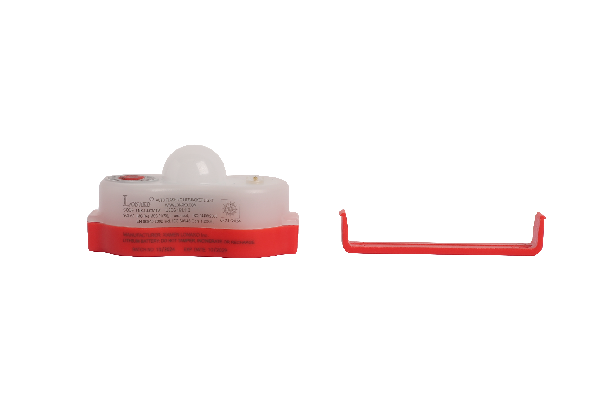 LNK-LJ-03A1W救生衣灯是锂电池供电的应急信号灯,可安装在各种救生衣上,以指示幸存者的位置。该救生衣灯产品自身是可漂浮设计。当救生衣灯的水流开关接触到水后,灯将自动启动并在至少28小时(-1℃下24小时)内持续输出光强大于0.75cd的闪烁白光信号,其可以不间断地指示幸存者的位置以便提高救援成功率。 当水流开关与水接触时,可以手动关闭和打开救生衣灯。