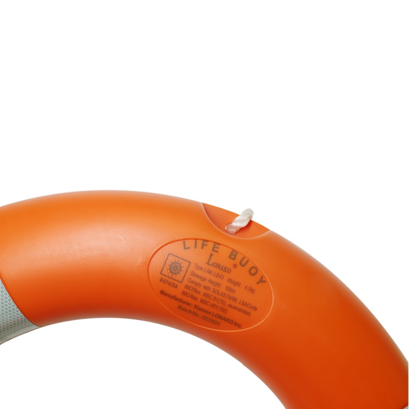 LNK-LB43救生圈通常需要同时配备救生圈灯和自发烟雾信号的迅速抛投装置,为海上救援提供足够的位置和方向指示。