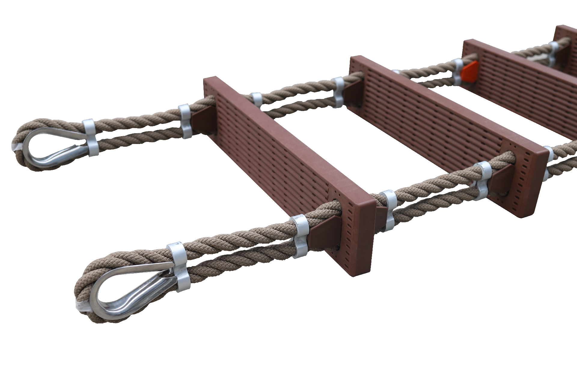 LNK-ELD-TA系列复合材料登乘梯采用自主研发的复合材料踏板、复合材料踏板夹具、涤纶绳边索等部件组装而成,作为人员从船上安全上下救生艇和救生筏的绳梯。