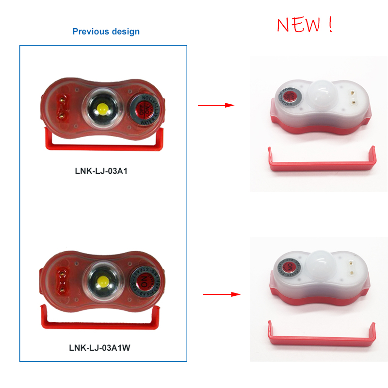 2020年02月22日 随着最后一批透明上盖版本的LNK-LJ-03A1W产品下线。我们对这款上市10余年的产品进行了一次全新的改版升级。 新版的LNK-LJ-03A1/W救生衣灯将采用更为清新风格的乳白色上盖外观,此外由标签改为镭刻标识。除了外观和一些基础的性能升级外,升级后的产品新取得的证书还将增加2020最新MSC.81(70)标准要求的IEC60945标准相关测试。具体产品变化如下,若您对此次产品升级还想了解更多,欢迎随时联系我们咨询! 上一篇:新品发布- LNK-ERS1电子求救信号灯 下一篇:LNK-LB-01B救生圈灯标签改版升级