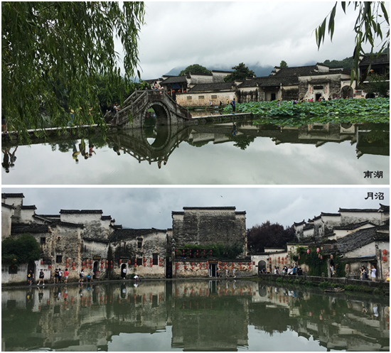 第三天,我们到了有“画里乡村”之称的宏村。一进宏村,首先看到的就是南湖风光,青瓦白墙,小桥流水,大家已经忍不住开始各种拍照了。接着我们到了位于村中的月沼,这也是经典电影《卧虎藏龙》的取景地之一。虽然宏村小路很多,但是逆水进村,顺水出村,跟着流向走就不会迷路啦。