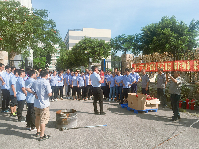 为了使公司全体员工熟悉如何使用灭火器,掌握对突发火灾的应变、逃生技能,学会灭火以及有序地进行人员的疏散处理,确保员工生命安全, 2019年7月25日下午朗纳科组织全体员工进行消防安全疏散与灭火演练,当天16:00警报声一响全体员工从办公场所,车间现场有序按疏散路线进行人员撤离,并疏散到创业园货梯门口场地集合。