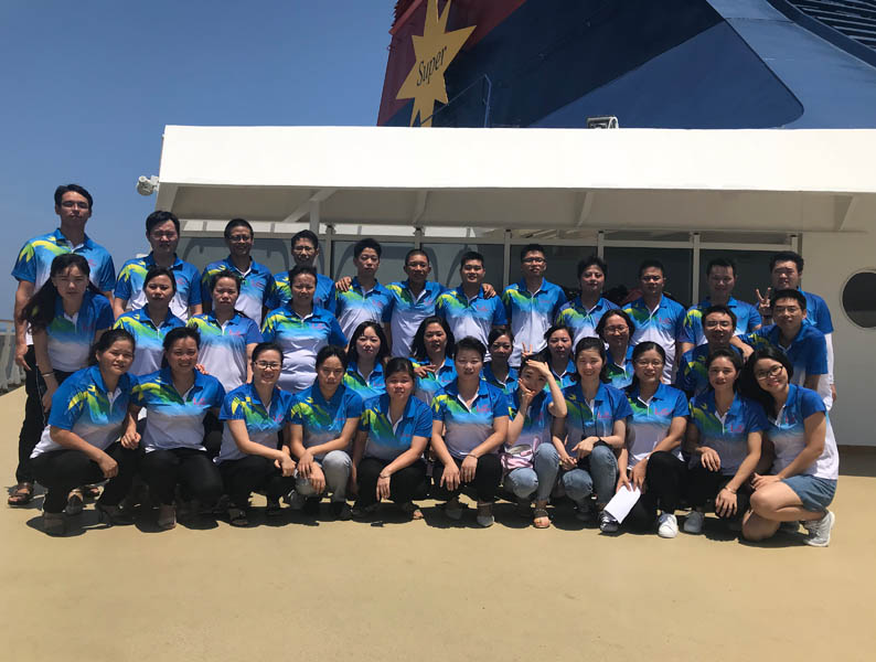 When the cruise returned to the Taiwan Strait on August 13th, the weather is very sunny, so the company organized everyone to take a group photo on the spacious cruise deck.